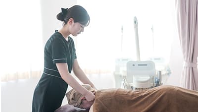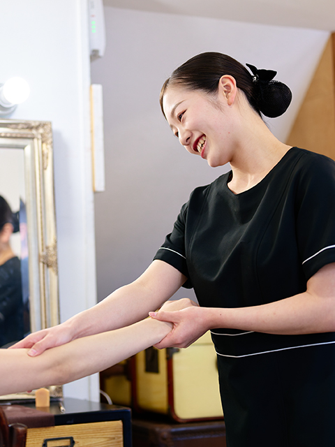 - エステに関する総合的な基礎技術、基礎知識を習得。エステティシャンとしての立ち居振る舞いやマナーも身につける。