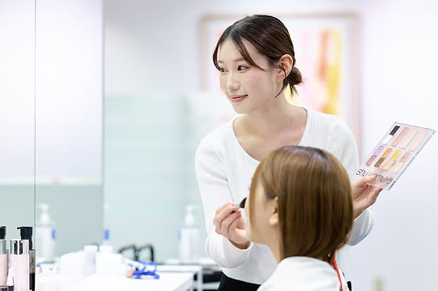 人の骨格を意識したメイクや、印象を変えるメイク法など基礎知識を学びます。