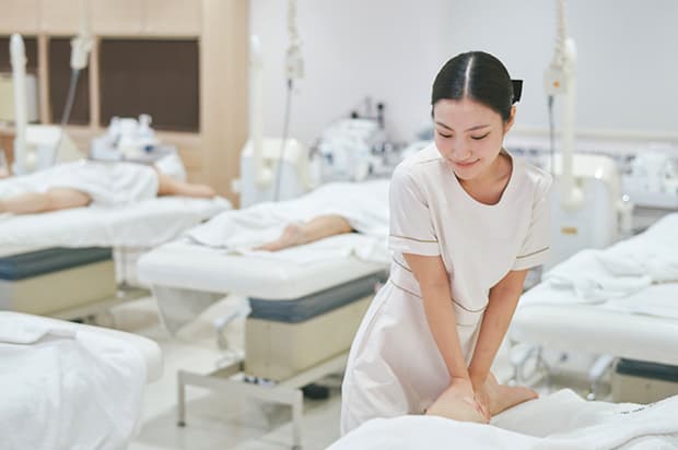 ハンドトリートメントに加え、最新エステ機器を使用した痩身テクニックを習得します。