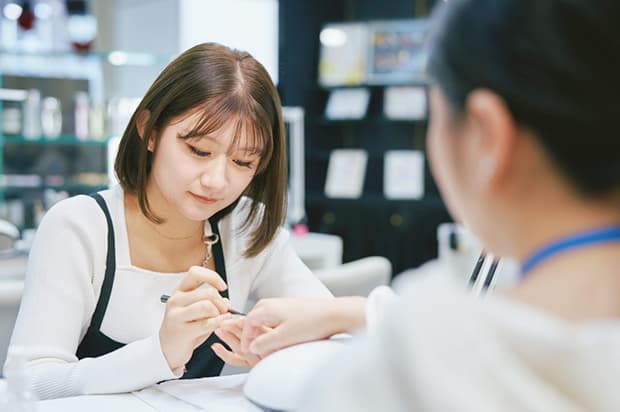 - ジェルネイルやネイルマシーンを用いた主流となる技術を身につける。