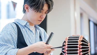 カラー剤の調合方法から最新のスキルまで、幅広く身につけます。