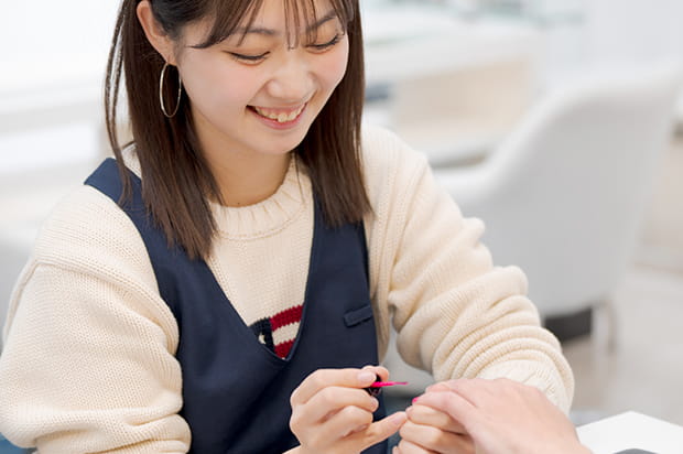 ネイルは基礎から学ぶ授業内容なので、未経験の方でも問題ありません。道具の扱い方や基本技術から丁寧に指導していきます。
