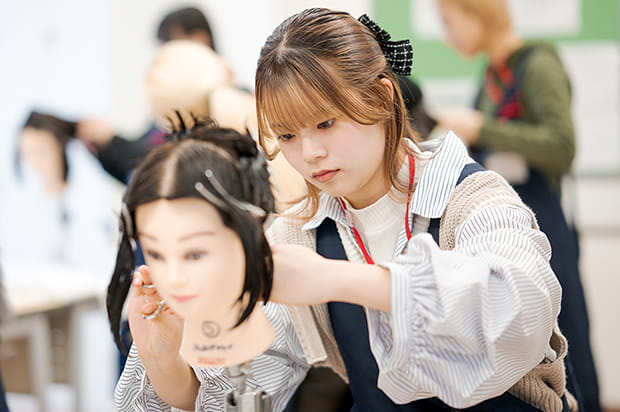より高度な技術の習得に加え、資格試験の合格を目指す。サロンワークを意識した学びで卒業後すぐに活躍できる実力を養う。
