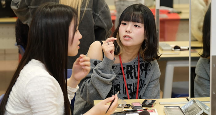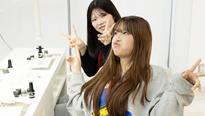オープンキャンパスでは、メイク・エステ・ネイルの実習を授業に近い形で体験できます!実際にやってみてからコースを考えられるので、進路に迷っている人にもおすすめです。